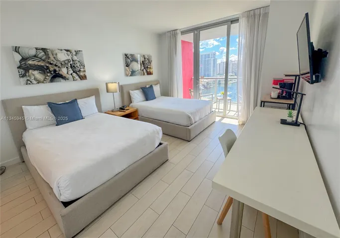 2Bed/2Bath At The Beachwalk Resort with Amazing Views. Totally Furnished Property is composed of 2 units 1409A & 1409B(1409A One Bedroom Suite Containing a Large Kitchen W/ SS Appliances, washer, and dryer, Wood Cabinets & Dining Table. Living With Couch & TV. Large King Bedroom Suite W/Walk-In Closet & Updated Bath. Balcony Access From Both Living & Bedroom and Tile Floor)&(1409B has two Double Beds, Walk-In Closet And Desk Area w/small refrigerator and microwave, Additional Balcony & Updated Bath With Frameless Shower Enclosure)Rooftop & Waterfront Pool, Gym, complimentary shuttle to the beach. Income from the first day, NO RESTRICTIONS, can be rented Daily by AIRBNB, BOOKING, VRBO, EXPEDIA, ETC. HOA Included Power, Wifi, Cable, Water & Bldg Insurance. Porcelain Floor and Vinyl.