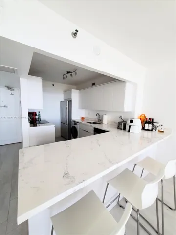 Completely renovated, top producer, highly desired, fully furnished apartment. This jewel can be rented month to month. Short Term lease, 14% taxes apply. Private balcony facing the ocean, pool, gorgeous serene views. No cars, no pollution. High gloss white cabinets, washer and dryer in the unit, tile floors throughout. 2 Double Queen Size Beds, 2 walk in closets. Fast online approval. Rent includes: high speed internet, digital cable, 1 free valet parking, water, central A/C, gym, electricity,. Heated pool, Gym and direct beach access. Location, Location, Location, walk to Lincoln Mall shops, restaurants, entertainment, right across from the Ritz Carlton Hotel.