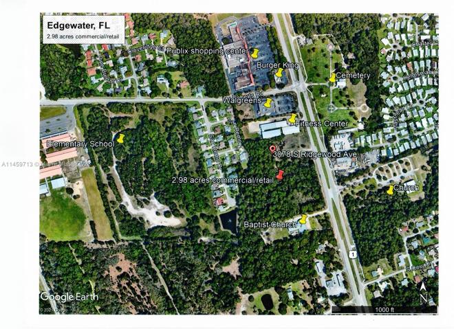 3 adjacent parcels, 140′ frontage on US-1, traffic count of 15,000/day. Volusia County bus stop next to it. Adjacent to Fitness Gym to the north, Baptist Church to the south. Fast growing community, steps to Walgreens, Publix, Burger King, houses of worship, etc. Near Indian River & beaches. B-4 zoning allows many commercial uses, retail, offices, medical, bank, restaurant, daycare, warehouse, self-storage/warehouse, car wash, etc. Under Volusia County legislation, 2 parcels zoned B-4, 1 parcel zoned residential R-3. Volusia County desires annexation to City of Edgewater. Annexation is an opportunity to request rezoning from City to fit buyer’s needs, i.e. rezoning to R-5 for up to 35-unit multifamily development. Potential to acquire additional lot(s) for larger development project.