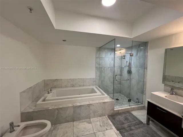 Unit features an oversized bathroom with a separate shower, jacuzzi tub and bidet.