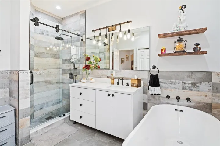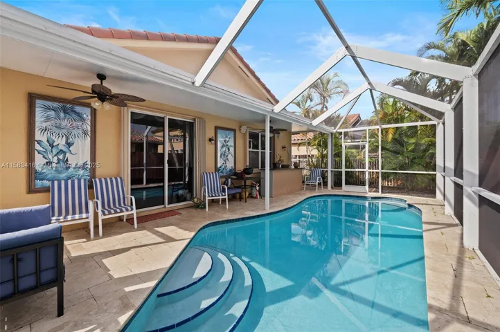 GORGEOUS SINGLE STORY HOME WITH SCREENED-IN SWIMMING POOL PERFECT TO STAY COOL IN THIS HOT SUMMER! FEATURING NEW DIAMOND BRIGHT FINISH AND ELEGANT TRAVERTINE FLOORING. INSIDE, INDULGE IN THE SEAMLESS FLOW OF PORCELAIN WOOD FLOORS THROUGHOUT, ADDING WARMTH AND SOPHISTICATION TO EVERY ROOM. COMPLETELY REFRESHED WITHIN THE LAST 24 MONTHS, THIS HOME IS THE EPITOME OF MODERN ELEGANCE. SOLAR PANNELS FOR POOL & NEWER POOL HEATER, UPGRADED TILE FLOORING THROUGHOUT THE LIVING AREAS, ELEVATING THE AMBIANCE OF EACH SPACE. EXPERIENCE LUXURY IN EVERY DETAIL WITH METICULOUSLY UPGRADED BATHROOM FIXTURES AND STUNNING POOL SCREENINGS. DELIGHT IN THE UPGRADED KITCHEN FEATURING GRANITE COUNTERS AND A BEAUTIFULLY CRAFTED BACKSPLASH, ADDING BOTH STYLE AND FUNCTIONALITY TO YOUR CULINARY HAVEN.