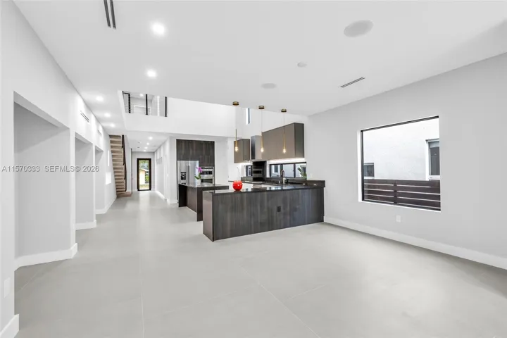 New construction townhouse in Tarpon River on a quiet dead-end street. High ceilings and double-height dining area create an open, modern feel. Spacious Italian kitchen, impact windows and doors, smart home wireless technology, surveillance cameras, and multi-zone sound system