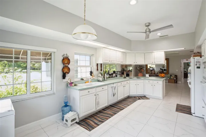 Beautiful home nestled in a peaceful and friendly neighborhood. The grand entrance leads to an expansive living area filled with natural light, featuring high ceilings, elegant 24×24 tile flooring, large double pane windows and seamless flow into the dining and kitchen areas. the expansive peninsula kitchen counter seats upto six people with an open concept design allowing for a great entertaing space. The primary bedroom has a walk in closet, en-suite bathroom with a jetted tub and separate shower.Large bedrooms with ample space. The bathrooms have built in heaters to keep you warm in the winter months. Custom blinds with automatic open in the family area. The laundry room has an additional pantry. The screened patio provides unobstructed views of lush open landscape. .