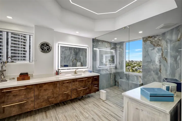 WOW! CONTEMPORARY MASTERPIECE! Enter through private elevator and immediately see panoramic ocean, bay, & city vistas throughout! This extraordinary 3173 sf modern sky home will leave you breathless. Almost $1 million spent in remodeling! No expense spared, all redone with the finest finishes, nothing original remains. Enjoy custom lighting throughout, new state of the art kitchen with top of the line appliances, huge primary suite in private wing w/ large closet and spectacular new ensuite bathroom, new bathrooms, Wide open floor plan, spacious living area, and two expansive terraces! Experience The Resort Lifestyle That Only The Point Can Offer, Including Renovated 25,000sf Resident’s Club, Juice N Java Cafe, Gym, Spa, 4 Tennis Courts, 3 Pools, BBQ Area, Kids Playground, and More!