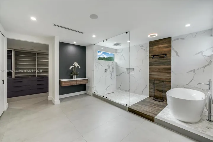 Motivated seller – great opportunity for buyers! Presenting a stunning, modern masterpiece by ECO Modern Custom Homes. This exquisite 2-story residence is nestled in a welcoming Pinecrest neighborhood. Step through a solid wood pivot door into a spacious, light-filled living area with soaring 20-foot ceilings and premium Castellon porcelain flooring from Spain. With careful attention to detail, this 8,337 total s/f home offers 7 bedrooms, 7.5 baths, dual car garages, a media room, wine cellar, Pedini kitchen, safe room, and office. Set on an expansive 30,094 s/f lot, the outdoor space is perfect for entertaining, featuring a pool and lush landscaping around the property. A fully equipped smart home, it provides convenient control through a smartphone app.