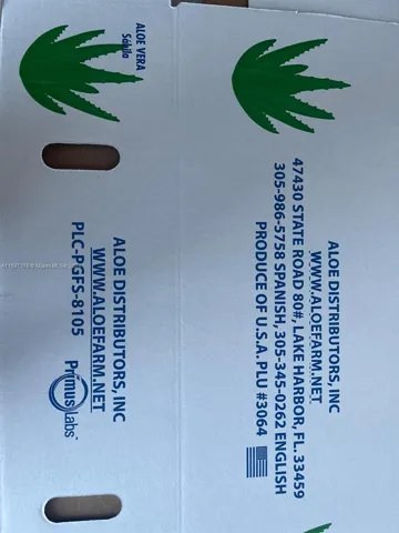INCOME PRODUCING PROPERTY!!! 32 acres of Farm Land in Palm Beach County. just off US 27 , 1 1/2 hr. drive from Miami. Property currently has Aloe, plantains, Sugar Cane and other fruit trees. Property has its own irrigation system as well as 2460 sq. ft. warehouse. Fully equipped 824 sq ft 3 bed/ 3bath apartment; 3-phase power available 240v/120v. Produces $1,500,000 gross with a gross return of 928K Purchase includes Diesel Pumps, Electrical Pumps, Tractor and all equipment necessary to conduct business. All other equipment can be negotiated if the price is right. This Aloe vera farm has been in existence for over 35 years with major box stores as their clients. THis is the only Aloe Vera Farm currently in Florida .