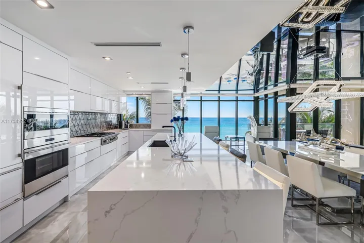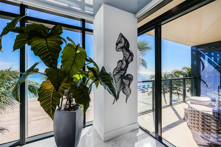 Discover beachfront luxury in this exclusive five-story boutique residence with direct beach access and panoramic ocean views. Designed by renowned Carlos Ott. With only two units per floor, a private elevator opens into your 2,606 sq. ft. retreat, featuring three expansive balconies. This completely remodeled unit boasts premium flooring, custom ceilings, and elegant bathrooms. Fully furnished with exquisite taste, it offers three spacious bedrooms, each with an en-suite bathroom, plus a refined powder room. The gourmet kitchen features top-tier appliances, a wine fridge, and a gas cooktop with a built-in BBQ ideal for delightful dining. A large laundry room and same-floor storage add convenience. Located near top dining and entertainment, this residence offers refined coastal living.