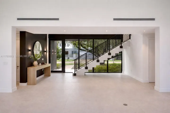 Step into this stunning residence on an oversized lot where elegance meets modern design. A grand entrance with solid core doors leads to Pedini cabinetry, porcelain countertops, and a chef’s kitchen with Miele appliances. The spacious great room features high ceilings and large impact-resistant doors and windows, flooding the home with natural light and showcasing the outdoor retreat with two covered terraces and pool. Upstairs offers three en-suite bedrooms, a secondary laundry, and a luxurious primary suite with private terrace, oversized closet, and spa-like bath. Closets and vanities by Pedini Miami. Elevator-ready and future-ready for a smart home system. Move-in ready with CO in hand.
