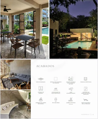 Stunning Apartments of 2/2 in Tulum’s Best Area. Located in a prime, gated community with 24/7 security and controlled access, just 5 minutes by car from Tulum’s most beautiful beaches. Each unit features air conditioning, elegant finishes, marble floors,custom wood closets and bathroom vanities, electric water heaters, modern one-piece toilets, and electric cooktops.Resort-style amenities include a swimming pool, palapa bar with restrooms, hammock area, grill lounge, holistic center, massage room, yoga space, gym, and more.