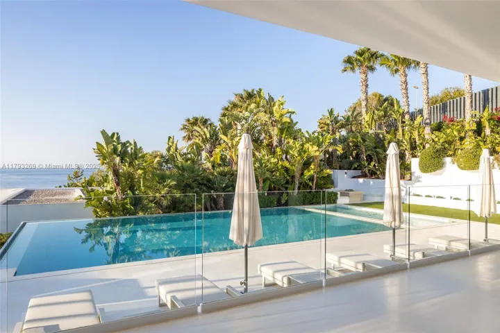 Hidden within pine trees and fragrant gardens, this 850-square-metre (9,150-square-foot) on top of a plot of land of 1600m2, 8-bedroom villa opens to expansive outdoor terraces and gardens, including a private pool and Jacuzzi with views of the sea.