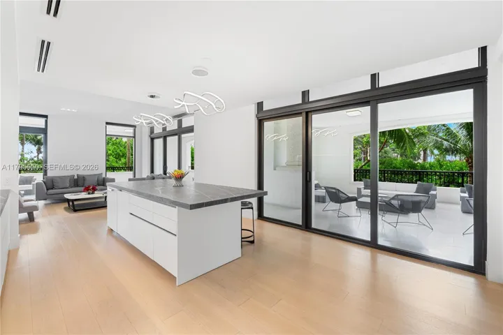 LUXURY IN MINIMALISM DESIGNED IN ELEGANT HUES OF GRAY & TAUPES IN THIS PALATIAL CORNER RESIDENCE WITH BAY VIEWS ON FISHER ISLAND’S PALAZZO DEL SOL! Oversized 7,630 SF of Pristine Interiors in an Armani Casa Vibe with Nearly 3,000 SF of Deep Wraparound Terraces. This 5 Bedroom + Study & 6.5 Bathroom Home is Exceptionally Maintained like New. 2 Private Elevators lead you to your Mammoth Bayfront Great Room with Elegant Formal Dining & Lounging Areas—Media Room with Sculptural Oak Louvers. Elegant White Boffi Kitchen showcases a stone Eat-in Island + Gaggenau Appliances & Temp-Controlled Wine Room & Pantry—adjacent Family Room with a Massive Terrace perfect for Entertaining. The Massive Primary Suite with Ocean-Facing Terrace features its own Office, Clad in Oak Millwork. Two Luxurious Custom Walk-in Closets. Primary Bathroom wrapped in Bookmatched Carrara Marble, Double Vanity Sink, & Boffi Soaking Tub & Rainshower. All Bedrooms feature En-suite Baths + Terraces with Lush Tropical Views. 2 Parking + 2 Golf Cart Spaces + Storage Unit.