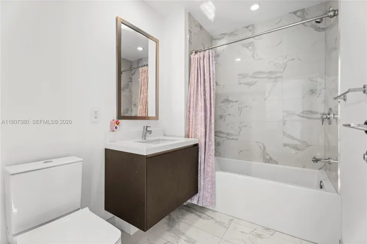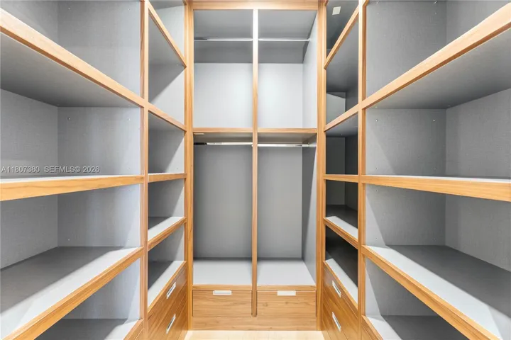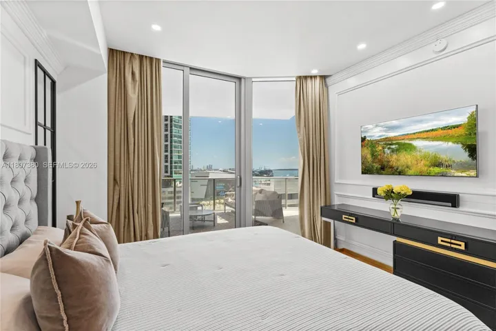 A redesigned 2-bedroom + den with the option to convert into a 3-bedroom, located in the heart of Miami Worldcenter. Unit #1409 features custom doors, handles, flooring, window treatments, millwork, upgraded lighting, wallpaper, built-in storage, and a premium audio system. Enter through a private lobby with secure keycode access, custom finishes, and built-in cabinetry to maximize storage. The residence opens through a foyer hallway which leads you to the bright living areas with water and skyline views. The expansive outdoor terrace, located above the amenity deck, includes a TV and lounge space to enjoy the bay and city skyline views. The residence is fully-furnished and located in the building with the most amenities in the world.