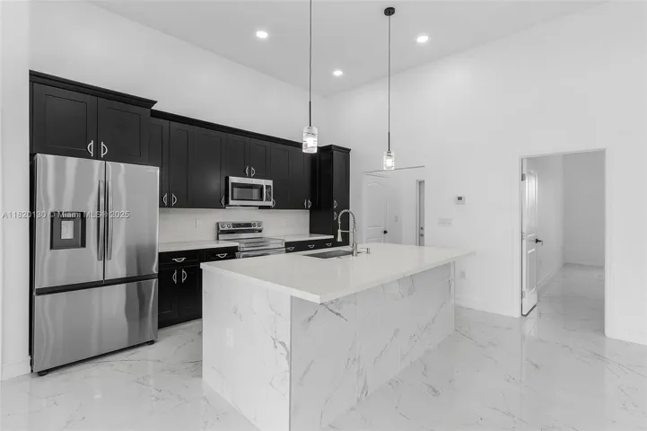 Beautiful New Construction Home in Lehigh Acres. This Charming Home Features 4 Bedrooms, 2 and half Bathrooms 2 Car Garage. An Oversize Master bedroom included walk in closets, dual sinks and a separate soaking tub. The open concept design 12 feet high Ceilings, ceramic flooring in main living spaces. recessed lighting throughout the House. The Kitchen is fully equipped with upgraded 42 cabinets and quartz Countertops. Step outside through a sliding glass door to the lanai.Enjoy playing,relaxing and entertaining in your backyard.