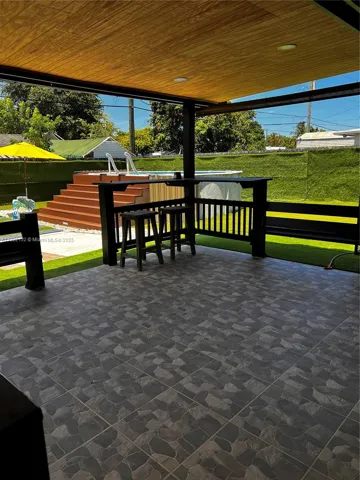 Beautifully maintained 3-bedroom, 2-bath single-family home combining comfort and style. Features a bright open-concept layout with marble-look tile floors throughout. The updated kitchen offers rich wood cabinets, granite countertops, stainless steel appliances, and a built-in beverage cooler. Enjoy a spa-inspired bathroom with sleek finishes, rainfall shower, and frameless glass. The backyard is a true retreat with a covered patio, BBQ area, and an above-ground pool with sun deck, all surrounded by low-maintenance turf and tropical landscaping. Recessed lighting, modern fixtures, and a spacious driveway with room for a boat or RV add to the appeal. Conveniently located near highways, shopping, and schools—perfect for relaxing or entertaining!