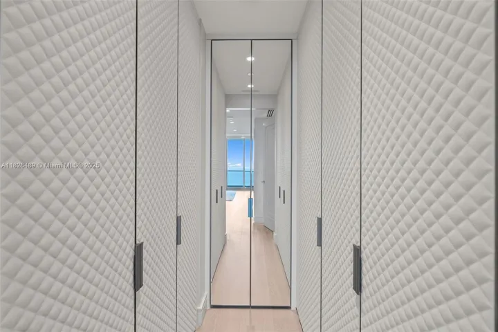 Oceanfront “Vecchio” residence at The Estates at Acqualina, designed by DKOR Interiors. Flow-through layout with 4 bedrooms, 5 bathrooms, and a den. Features include spacious great room and family room, two terraces with ocean and Intracoastal views, Miele appliances, and La Cornue gas range. Smart home automation with electric shades and blackouts. Primary suite includes dual bathrooms with onyx finishes. Full-service building with amenities such as spa, theater, ice-skating rink, bowling alley, Avra restaurant, and more. Offered furnished with Fendi, Poltrona Frau, and B&B Italia pieces. $8.5M.