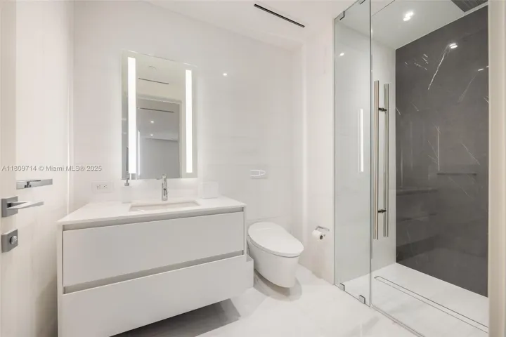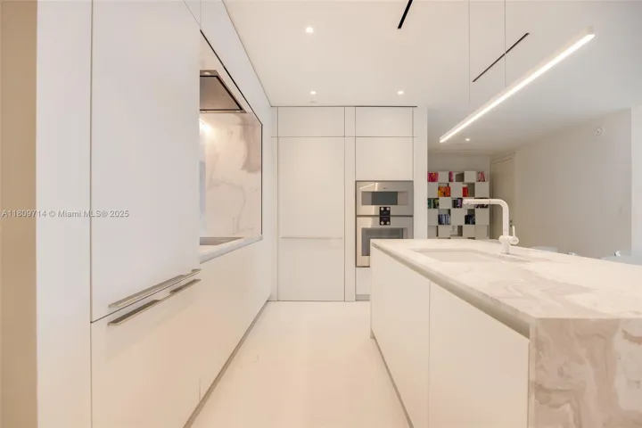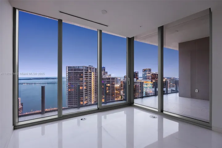 Rising 52 stories above Miami, this move-in ready 1,699 SF residence redefines luxury with panoramic views of the ocean, bay, and skyline. With soaring 10-foot ceilings and expansive floor-to-ceiling windows, it is the highest-floor 2-bedroom + den residence in the building, offering exceptional light and spacious elegance. The fully customized chef’s kitchen features Calacatta Cozzano marble, Gaggenau appliances, and Franke fixtures. Additional highlights include Kohler Veil smart toilets, custom closets, recessed lighting throughout, and motorized Bandalux shades. Residents enjoy over 42,000 SF of resort-style amenities: a 55th-floor infinity pool, private cinema, spa, two-story fitness center, golf simulator, and helipad. A true showcase of sophistication and style.
