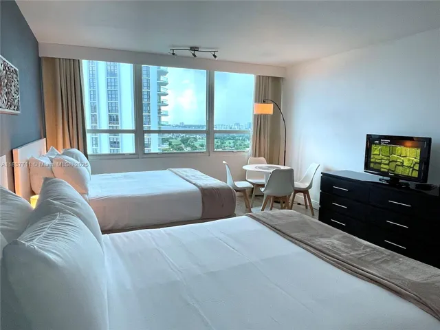 Resort style building offers: Swimming Pool, fitness center, tiki bar, stores, restaurants, tennis court, and 24-hour Front Desk.