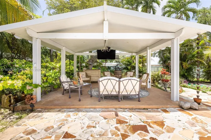 Owner financing available. This spacious 3,252 total sq ft home boasts a 3 BD/2 BA main house with a 1 BD/1 BA detached guesthouse, situated on a 17,400 sq ft lot. The guesthouse offers rental income potential, while the lot provides ample parking for boats, campers, etc. The lush tropical oasis features a pool with new solar heating/cooling system and an aluminum pergola for al fresco dining or relaxation. Inside, discover high impact windows/doors, vinyl plank floors, and a stunning renovated custom kitchen with an expansive cooking island, quartz counters and top-tier Frigidaire/GE appliances. The main suite offers a sitting area and dual closets, and there are 2 private wells for water and sprinklers. Prime location with easy access to major highways and top-rated schools.