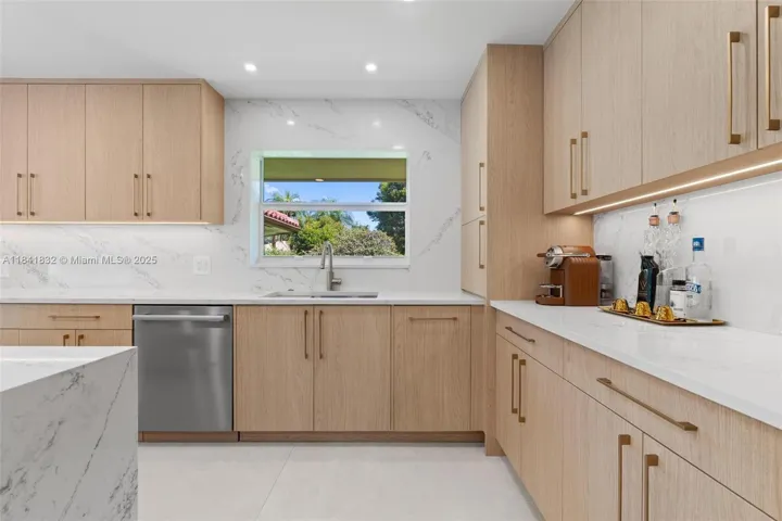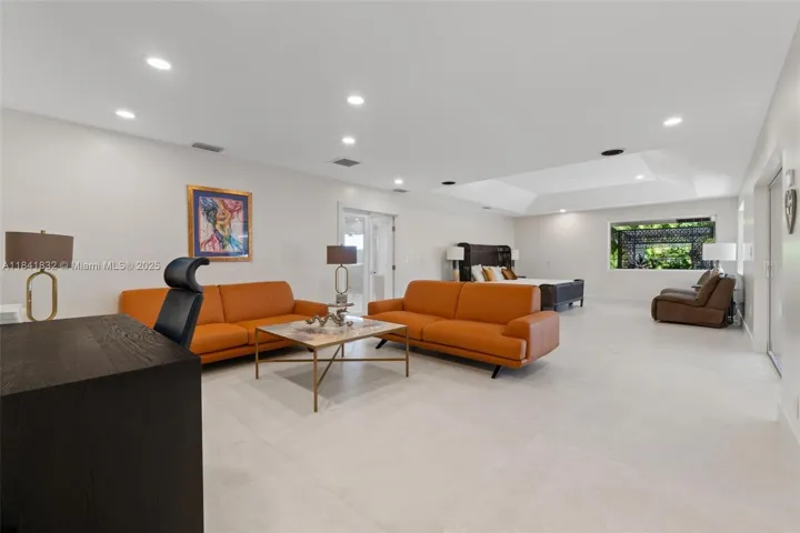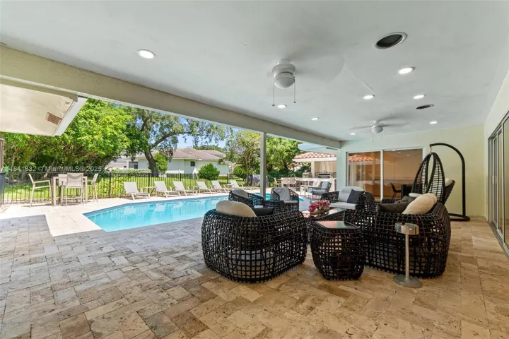 The home on a corner half acre shy piece of property has been completely renovated in 2024, new roof, impact windows, 4 brand new AC & Condenser units, renovated custom bathrooms, brand new custom open family style kitchen, large open living room, outdoor covered patio with 35 x 15 salt water pool, full outside kitchen with BBQ, Pizza oven, dishwasher, refrigerator and a separate large two bedroom, full bath guest house with a private entrance. Schedule your private showing today.