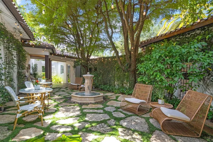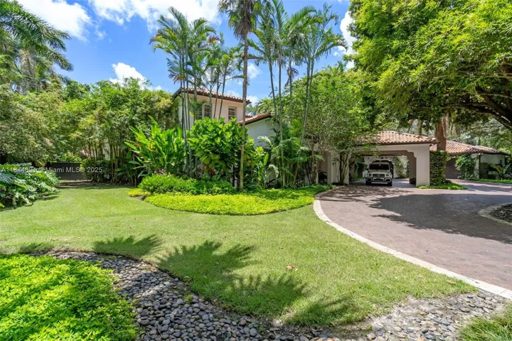 Discover this Mediterranean-style retreat on over 1 acre of lush, manicured grounds with a charming courtyard and a small fish pond. Designed for grand-scale entertaining and everyday living, it offers 2 primary suites—one up & one down—with generous closets, plus 4 additional ensuite bedrooms and a maid’s quarters with laundry. The open chef’s kitchen features Miele, Sub-Zero, commercial walk-in cooler, wet bar, and pantry. A summer kitchen with fireplace enhances indoor-outdoor living, while a 2-story guest house, currently used as an office and gym, complements the resort-style pool and spa. Smart features include Sonos sound, Lutron lighting, intercom, mosquito control, and landscape lighting. Three air-conditioned garages and a full-house generator complete this exceptional property.