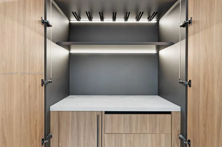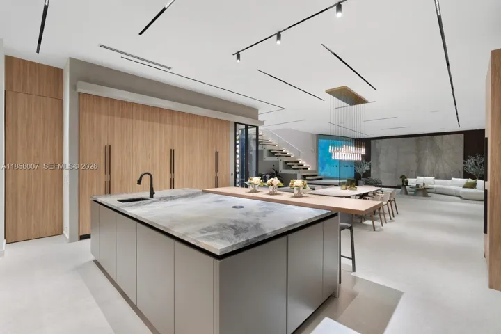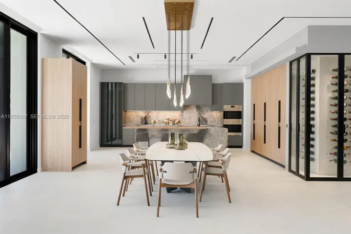 Designed with 11-ft ceilings and expansive open living spaces, this 6BD/6BA/2HB modern home features 2 primary bedrooms, a Mia Cucina Italian marble kitchen, integrated smart home and smart glass systems, premium sound, dual coffee stations, and a 160+ bottle temperature-controlled wine cellar.