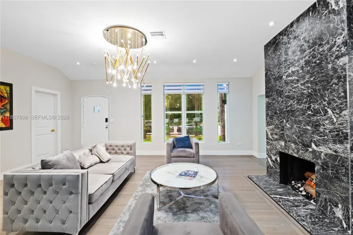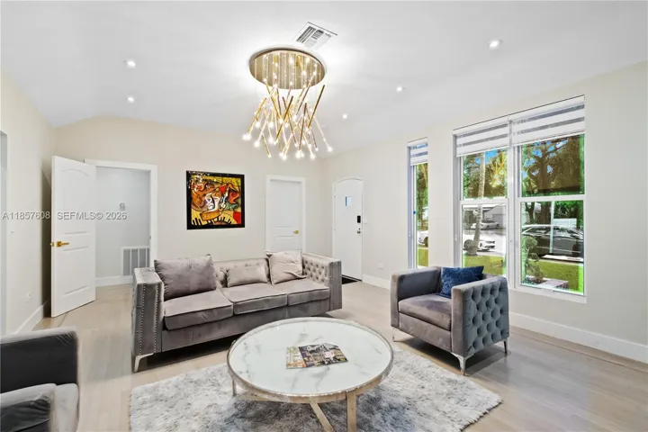 Welcome to this meticulously renovated Modern home in highly sought after Miami Shores! Boasting a total of 4 Beds/ 3 Baths, this exquisite property offers just under 3,000 sqft under AC, including a separate, beautifully renovated in-law quarters for added versatility and convenience. Step inside to discover soaring ceilings ranging from 10-12 feet throughout the entire home, creating a spacious and luxurious ambiance. The centerpiece of the living area is a real wood-burning fireplace, perfect for cozy evenings and gatherings with loved ones. Additional highlights include a 500sqft finished garage, providing endless possibilities as a pool/game room, gym, or additional garage space.
