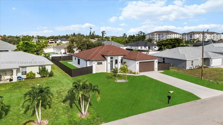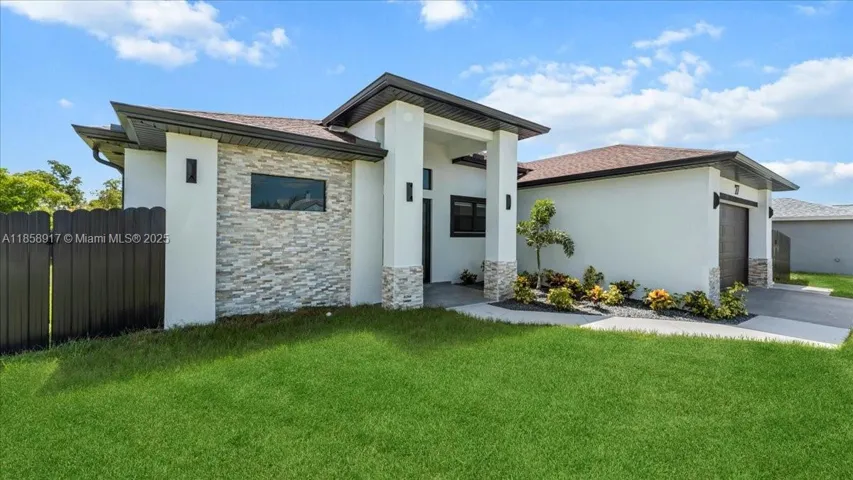 NEW CONSTRUCTION WITH POOL!!. Fenced throughout, this 4-bedroom, 3-bathroom residence offers 1,734 SQFT of living space and 2,568 SQFT of total area!!It features a beautiful saltwater pool with a convenient and spacious outdoor full bathroom, a spacious covered lanai, an outdoor kitchen with a sink and ample countertops with stainless steel cabinetry, a living room with high ceilings and ample space, and beautiful modern tile throughout.It features impact-resistant windows and doors and modern zebra-style window treatments.