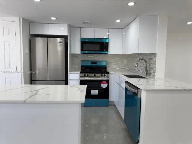 Bright and move-in ready with marble floors downstairs, laminate upstairs, recessed lighting, and abundant natural light. Modern kitchen with oversized island, buffet-style credenza, and brand-new high-end stainless steel appliances. Two large bedroom suites with walk-in closets and updated baths. Features new A/C, full-size washer/dryer, private patio, and ample storage. Quiet, well-managed community with clubhouse, pool, tennis courts, and playground. Walking distance to parks and synagogue, minutes to the beach, Gulfstream, dining, and shopping. No special assessments!