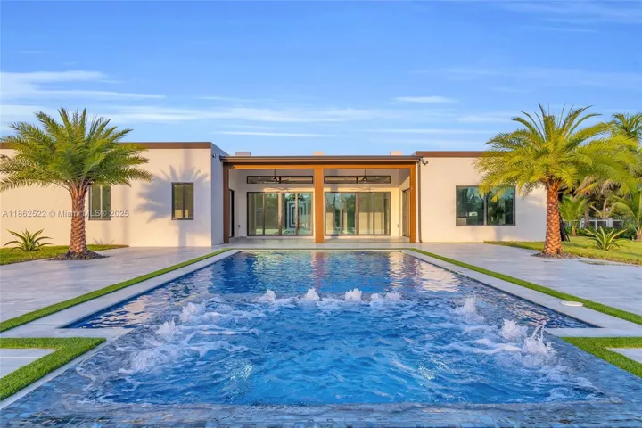 Discover unparalleled luxury in this brand-new custom estate with exquisite finishes. This expansive single-level home offers 4 bedrooms, 3.5 bathrooms, a spacious laundry room, and a chef’s kitchen with sleek cabinetry, premium appliances, and a marble waterfall island. The open-concept layout boasts soaring ceilings and modern design. The owner’s suite features a spa-inspired bath with freestanding tub, rainfall shower, and custom walk-in closet, while a second master with private bath adds flexibility. Set on 1.2 acres, the outdoor oasis showcases a saltwater pool, Jacuzzi, and terrace with fans and speakers. A gated entrance, 2-car garage, and parking for 20 complete this private retreat, minutes from Black Point Marina and Biscayne National Park.
