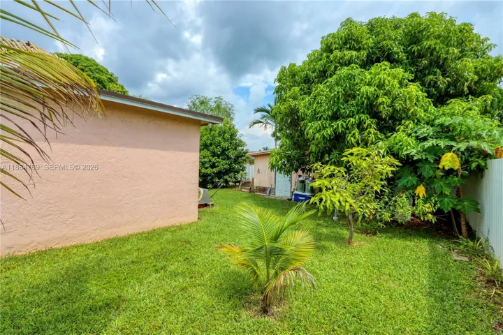 Plenty of living space with 2,127 sq ft! Lot is 8,750 sq ft. New roof installed in 2018, new A/C from 2019, and a new water heater provide peace of mind for years to come. 4-bedroom, 2-bath single-family home with no HOA. Located on a quiet cul-de-sac. Each bedroom offers a walk-in closet which is rare. The updated kitchen features stainless steel appliances and a washer/dryer in a dedicated laundry room. The large family room, separate from living and dining room, provides plenty of space for gatherings or privacy. Create a 5th bedroom if needed. Dual central A/C units allow for comfort and efficiency. Enjoy a fenced backyard with mature fruit trees including mango, plantain and more. Also includes a storage shed and covered deck with space for a vehicle. Drive way fits multiple cars. Near schools, shopping, restaurants, and the Turnpike for easy commuting.
