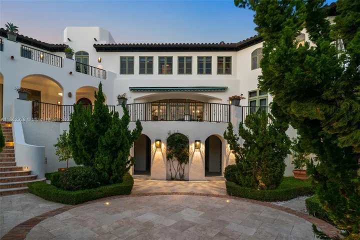 Nestled in the exclusive guard-gated enclave of The Moorings, this enchanting 17,873 SF waterfront estate captures the essence of Coconut Grove living. Designed with timeless elegance, the 7BD/7+2BA home offers refined craftsmanship and spaces that flow seamlessly to sweeping bay views. Covered terraces invite year-round outdoor living, while the gourmet kitchen with its grand island is the heart of the home. The primary suite is a serene retreat with sitting area, spa-like bath, and fireplace. With 143 ft of waterfront, enjoy a sparkling pool, private dock with direct Biscayne Bay access, and a rooftop terrace for sunset vistas. Just minutes from Coconut Grove’s charming boutiques, fine dining, and top schools, this residence embodies tropical sophistication.