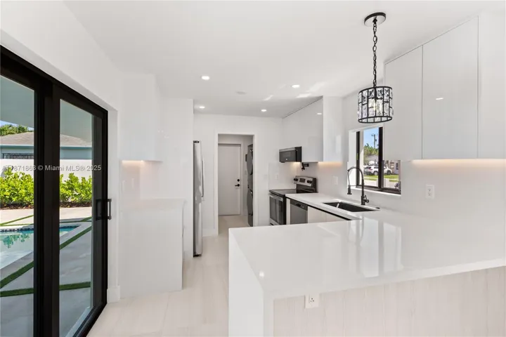 Beautifully renovated 4-bedroom, 3-bath home with no expense spared. Enjoy incredible natural light throughout and a host of extra features including impact windows and doors, all-new appliances, a steam shower with chair, pot filler, open floor plan, new white kitchen with quartz countertops, eat-in area, and porcelain flooring. Additional highlights include a Jack & Jill bath, indoor laundry with front-load washer/dryer and sink, instant hot water heater, and a cabana bath that opens to an immaculate pool and large patio—perfect for entertaining. The spacious yard features a wide gate that can accommodate a boat, plus plenty of parking. Located in a great school district, rentals like this are rare!