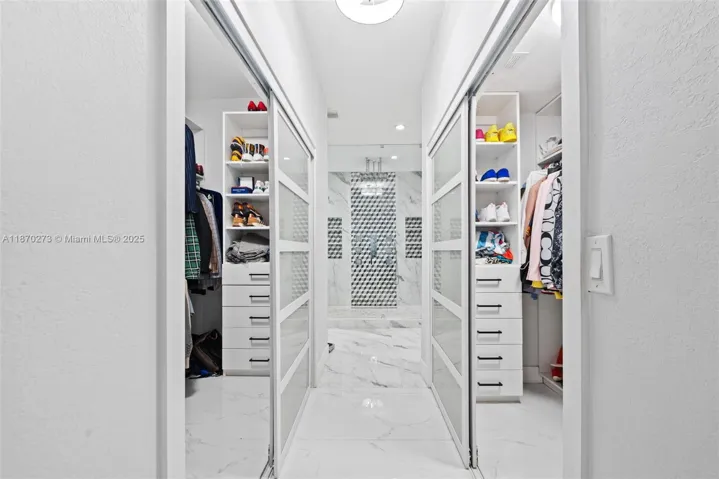 Stunning 6BD/4.5BA lakefront estate where no expense was spared in the remodel. This home features sleek porcelain floors, designer finishes, custom closets, and a spa-inspired primary suite with freestanding tub & oversized shower. Light-filled living spaces flow seamlessly into a gourmet kitchen and private gym area. Outdoors, enjoy a resort-style pool, covered pergola with full summer kitchen & bar, perfect for entertaining or watching the big game. Expansive lake views create the ultimate South Florida lifestyle. We have the perfect space for you in-laws ; The garage is beautifully converted into a bedroom and massive closet but can very easily be converted back to a 3 car garage. Enjoy lower energy cost with solar panels owned by the seller that will transfer to the new buyer.