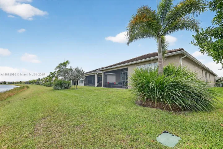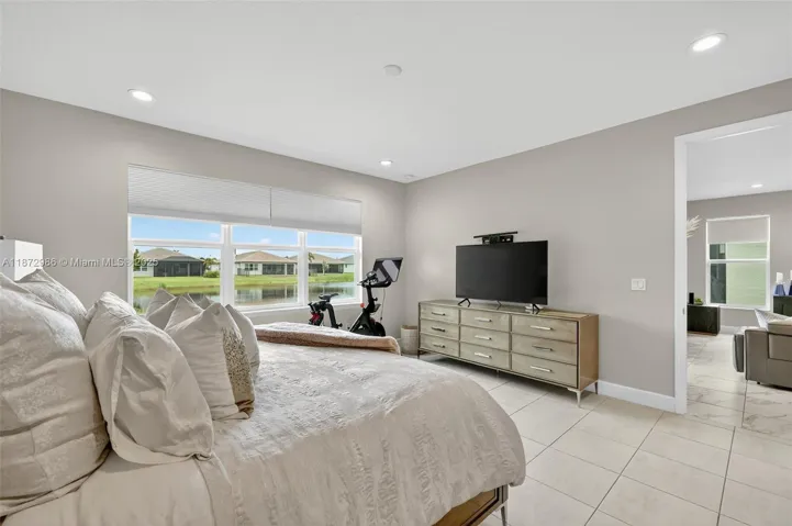 Stunning Marsala model with water views, filled with natural light! This home features crown molding, custom draperies, designer wallpaper, and high-quality porcelain tile throughout (no carpet). The bright white kitchen features a built-in pantry and high-end finishes. Both bathrooms are beautifully appointed, with art-inspired lighting and designer touches that extend throughout the living room. French doors lead to the office, while large windows frame the serene water views, creating a bright, stylish, and inviting home. It also includes a large storage room and a versatile den. Come visit this beautiful home and make it yours today! It’s time to enjoy the Riverland lifestyle!