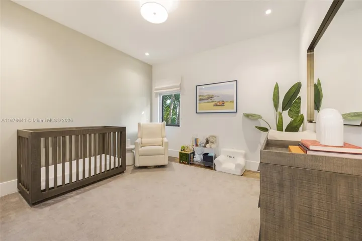 Behind a private gated entry, this tropical modern residence in North Coconut Grove blends striking design with serene surroundings. Set on a quiet, tree-canopied street near bayfront parks and marinas, the home features soaring ceilings, stone and wood floors, custom built-ins, and a chef’s kitchen with Italian cabinetry and SubZero/Wolf appliances. The primary suite offers a spa-like bath with soaking tub and glass rain shower. A floating staircase, elevator, impact glass, and 48kw generator enhance comfort and security. Outdoor living shines with a lush pool, covered terrace, and rooftop deck showcasing panoramic Grove views.