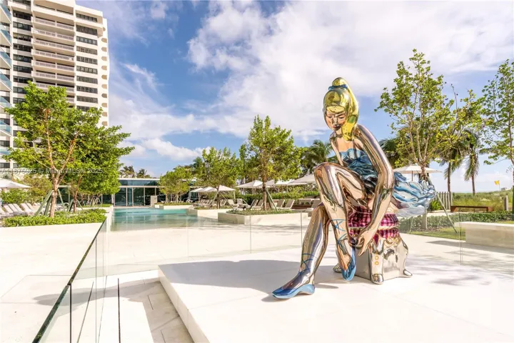 Floor-to-ceiling glass windows, abundant natural light. The elegant foyer leads to a modern kitchen with top-tier appliances. Oversized primary suite and second bedroom. A private balcony offers a tranquil retreat with a warm feeling of a home with all the privileges of living in one of the most exquisite buildings. Fitness center, spa, restaurant exclusive for residents, clay tennis courts, cabanas, pools, beach services, art-filled common areas featuring works by Jeff Koons.