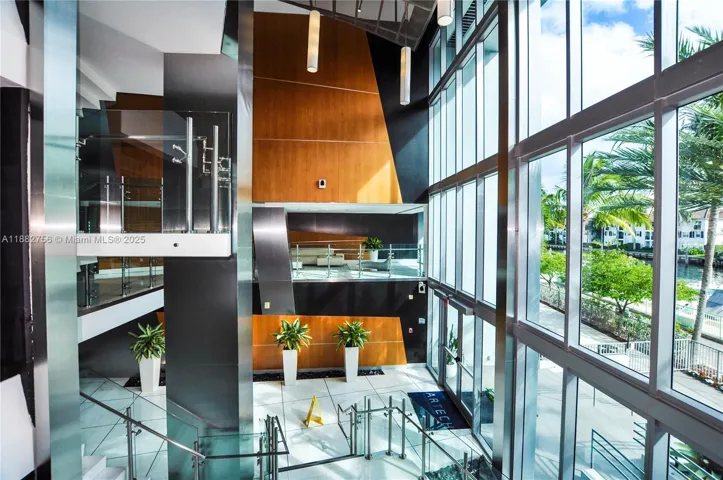 Experience elevated living in this spacious duplex, showcasing floor-to-ceiling natural light and serene water views. Elegant tile flooring flows throughout, complemented by custom sun shades and blackout curtains in the bedrooms for ultimate comfort. The chef-inspired kitchen features sleek Italian cabinetry, combining sophistication with functionality.