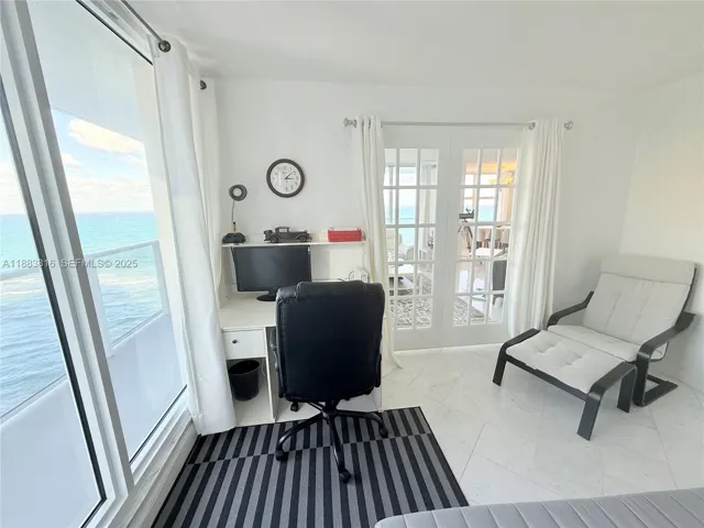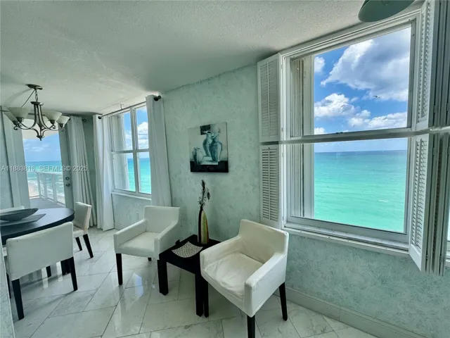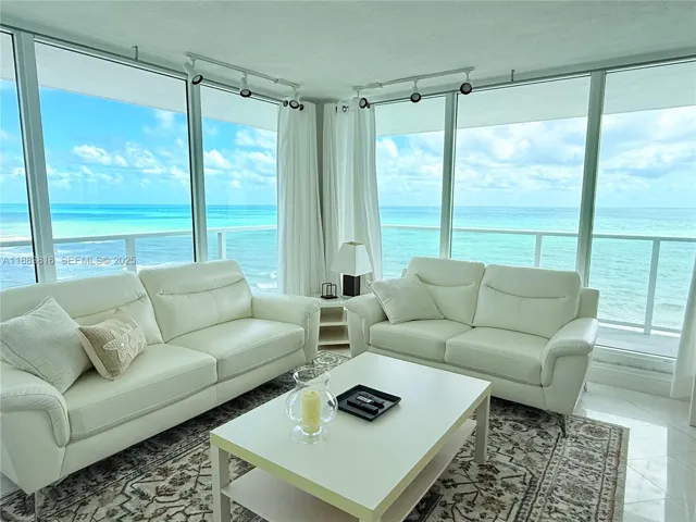 Spectacular 2 bed/2 bath+ Den that has queen size sofa bed and office, with ocean views – desired corner “04” unit in south tower – incredible views from the whole unit, including intercoastal view from the wrap-around balcony to the east and north. Separate shower, marbled and mirrored master bath with a tub – fully furnished – fully tiled – 1 garage parking covered and assigned + 1 garage parking open garage across street – full amenity building with valet parking, beach service, gym, 2 pools, restaurant, beauty salon, sauna, billiards and much more. 6 months rent minimum.