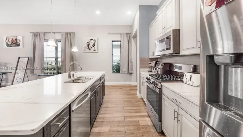 Rare opportunity to own in the award-winning community of Arden! This popular Antigua model offers 10’6” ceilings, 3 bedrooms, 3 bathrooms, and a spacious 3-car garage. The home is filled with upgrades including impact windows throughout, porcelain plank tile floors, upgraded two-tone kitchen cabinetry with a large island, quartz countertops, and cedar shelving in all closets and pantry. The master bath features elegant 24” tile flooring with matching wall tile, while the backyard is fully enclosed with an aluminum fence, perfect for outdoor enjoyment. Zoned for A-rated Wellington schools, this home combines modern style, quality finishes, and a prime location. Come see it today—you won’t be disappointed!