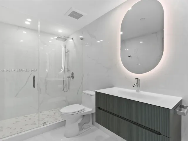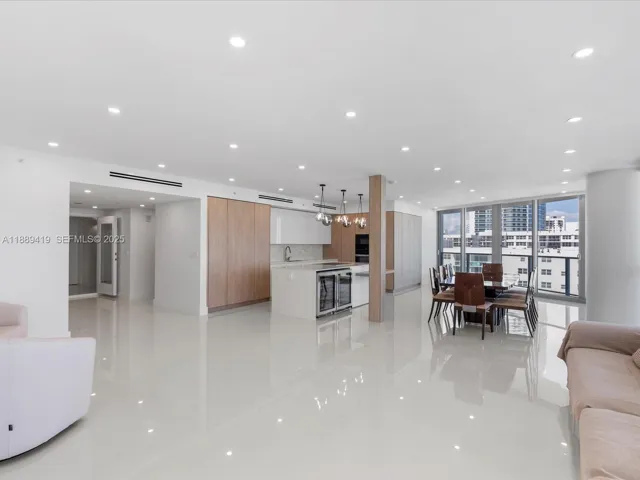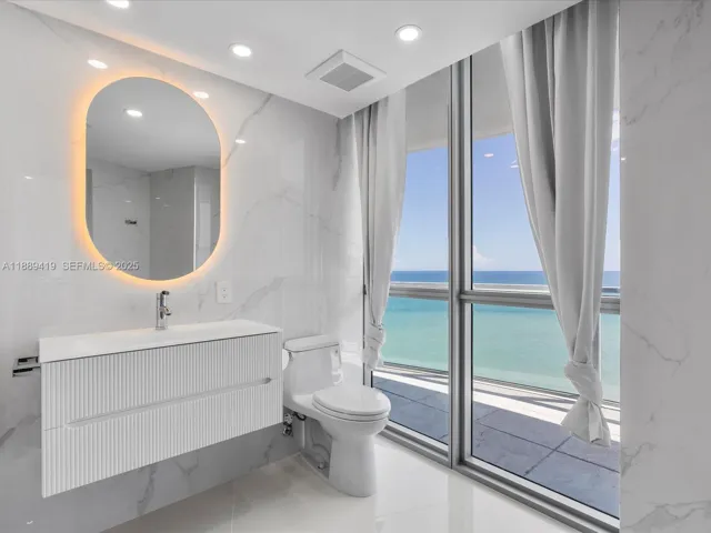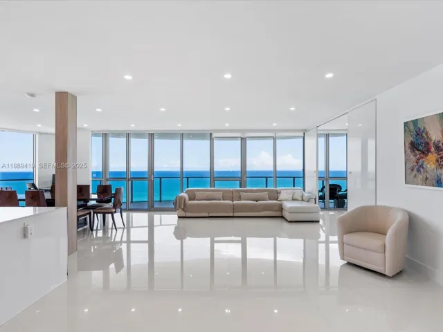 Completely remodeled direct oceanfront residence at Ocean Palms. 3,091 sq. ft. interior + 513 sq. ft. balconies. Beautiful Italian slab tile floors throughout, custom bathrooms with European fixtures, master bath with double vanity, tub, glass shower, and walk-in closets in all bedrooms. Leicht German kitchen with custom cabinetry, quartz counters, Miele appliances incl. induction cooktop and retractable downdraft vent. Two new AC units. Three balconies with ocean, city & Intracoastal views. Amenities: resort-style pool, 2-story fitness center, spa, party & billiard rooms, movie theater, tennis court, BBQ area, 24/7 security, valet. Apartment includes 2 garage spaces & storage.