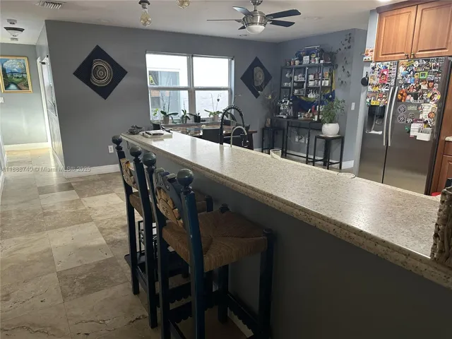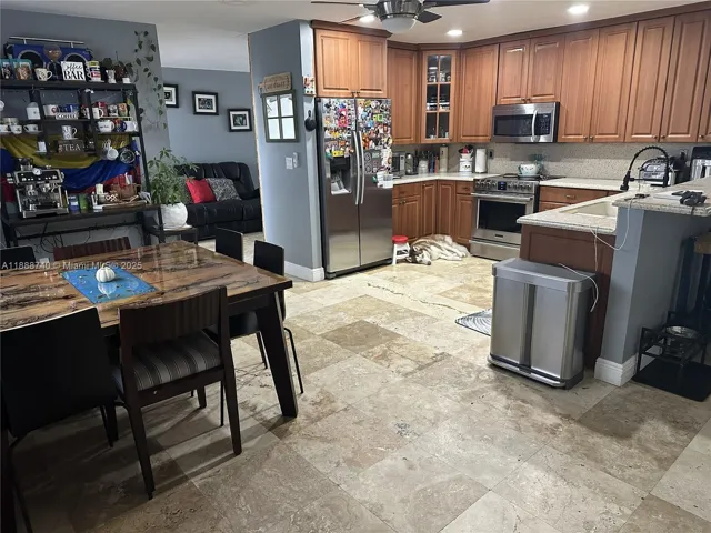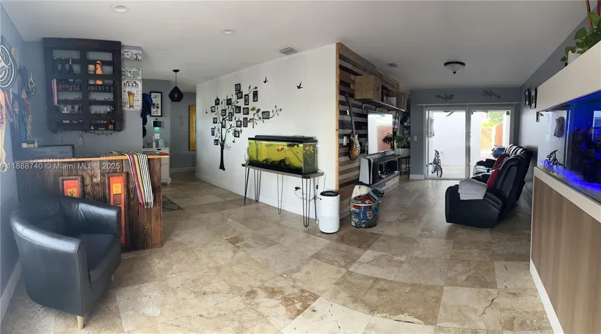 Come see this beautiful 3-bedroom, 2-bath home located in one of the most desirable communities in Miami! This move-in-ready property has been upgraded with premium features, including a brand-new metal roof (2025), travertine floors, and high-impact windows and doors. The kitchen opens to the dining area, creating a large, inviting space. Comfort upgrades include a central A/C unit and ducts less than 5 years old, a whole-house water filtration system (under 2 years old), plus a reverse osmosis filter in the kitchen. Built-in closets, solar panels, an oxygen water generator, and a UV A/C purification system add even more value. A decorative patterned concrete driveway and front entry plus parking for 4+ cars complete this exceptional home.