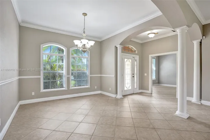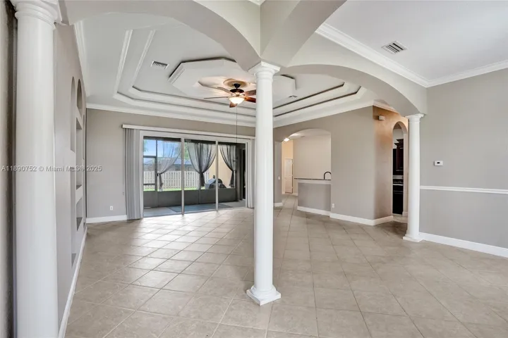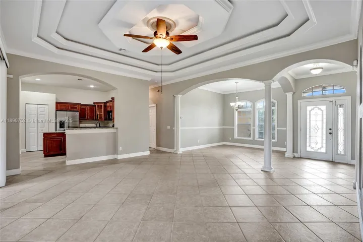 BRAND NEW ROOF! This beautifully designed 5-bedroom, 3-bath home offers style, space, and comfort. Inside, enjoy a blend of diagonal tile and hardwood floors throughout. The gourmet kitchen features granite countertops, wood cabinetry, and newer stainless steel appliances. Elegant details like double tray ceilings, arches, and crown molding add timeless charm. The spacious primary suite includes a jetted tub, tiled shower, and dual sinks. Upstairs, a versatile bedroom is ideal for a loft, office, or media room. The fenced backyard features a screened lanai and extended paver patio—perfect for outdoor living. Conveniently located near shopping, dining, and local amenities. Move-in ready and priced to sell!