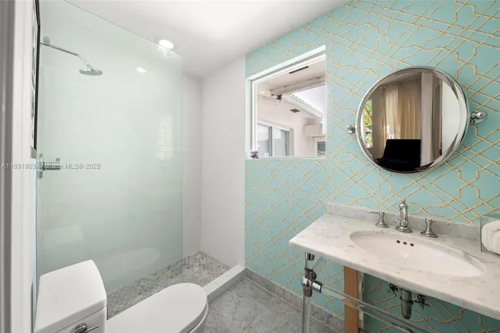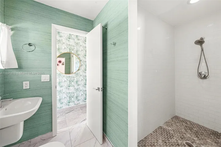 Impeccably renovated, this home in Miami Beach nestled amongst palm trees and 20-ft clusia hedges on prestigious North Bay Road, was designed in the Modern Deco style. This property features a massive living room with a bar, a master suite with 15-ft ceilings, a loft, electric shades, walk-in closets, and a spa bathroom with a steam shower, & a chef’s kitchen with a Bertazzoni stove, Sub-Zero fridge, & marble counters.