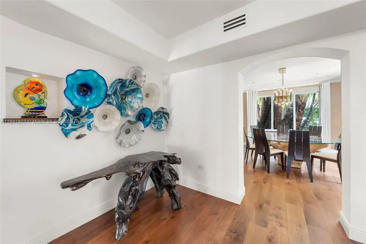This 6 bed, 6.5 bath house includes walnut hardwood floors, impact windows, a smart home system, a formal dining room, & a separate guest suite.