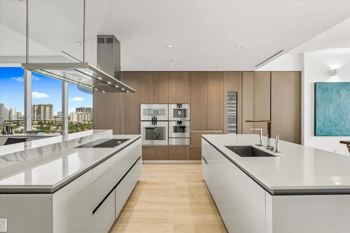 Experience the pinnacle of luxury living in this spectacular oceanfront corner residence at Turnberry Ocean Club. Spanning over 3,600 sf, this exquisite residence showcases breathtaking views of the Atlantic Ocean and Intracoastal Waterway. The open-concept layout seamlessly connects the contemporary Italian kitchen with the expansive living and dining areas, all framed by floor to ceiling windows and two spacious balconies perfect for entertaining or relaxing. The residence features 5 bedrooms and 4.5 bathrooms. It also includes a housekeeper’s bedroom with a private bathroom. Residents enjoy exclusive access to 6 floors of world-class amenities, including the extraordinary 3 story Sky Club, complete with pools, private dining areas, a full service spa and wellness center.