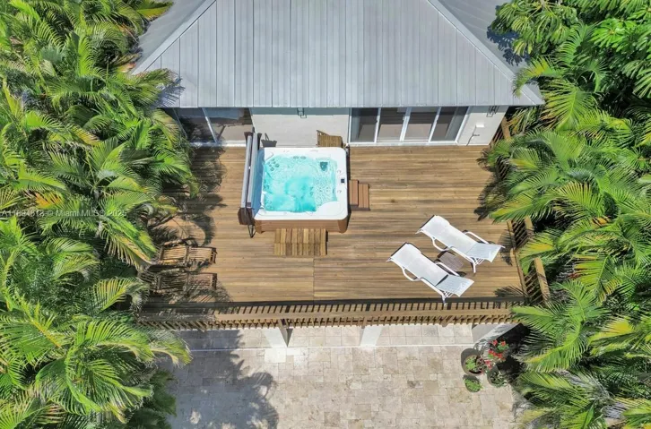 Owner is the designer/owner/builder. Hot tub on second floor deck, stand up attic with pull down stairs, tumbled marble pool deck. Pool, cameras, a/c system are all WiFi enabled. Pool is heated/chilled, pebble tec, dedicated vacuum input, waterfall. 550 sq ft patio ready for motorized screens, backyard southern exposure surrounded by 20′ Areca palm trees. House will never flood – had another foot to go during the recent 1,000 year rain. Includes all furniture, bedding, dishes, TVs, etc – turnkey. Central location with no backyard traffic noise. 10 minutes drive to Las Olas or the beach, 5 minutes to I-95, bike lane at driveway with 3 minute ride to Wilton Drive. Parking for 8 cars. Built 20 years ago to 140 mph wind code. PVC and copper plumbing. All water is filtered.