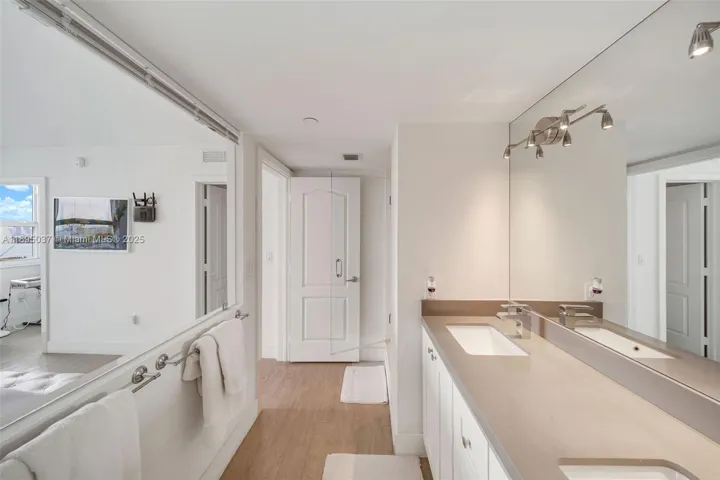 Enjoy breathtaking direct bay views of the Miami Skyline and stunning sunsets from this redesigned residence at The Floridian. This fully remodeled unit originally had 3 bedrooms but was converted to a spacious 2-bedroom, 2-bath layout with over 1,400 sq ft. Delight in a large space with abundant natural light. The reconfigured kitchen now offers a more open cooking space and a separate dining area perfect for entertaining. The main bedroom features a walk-in closet and a modern en-suite bath with a double vanity and bidet. The second bedroom also boasts an ensuite bath with a tub. Additional highlights include custom lighting, full-size washer and dryer, and one parking spot in the garage. The Floridian is a luxury bayfront building with resort-like amenities and an ideal location.