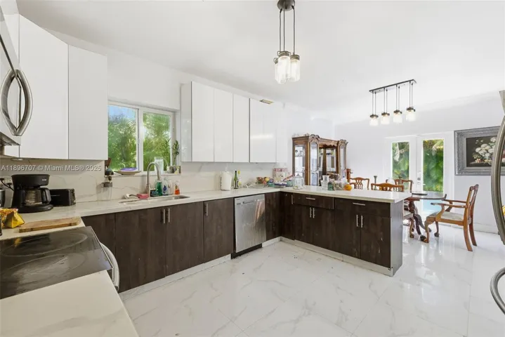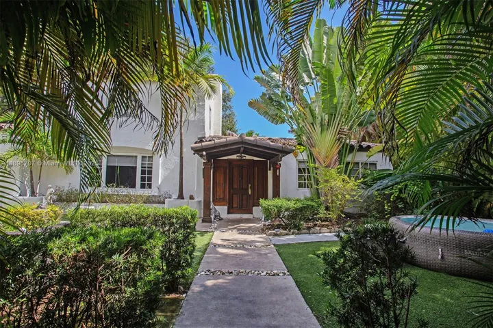 Rare corner lot fully enclosed by a CBS privacy wall and lush tropical landscaping, creating a private oasis in the heart of the city. The backyard features a beautiful pool surrounded by turf, perfect for relaxing or entertaining. The home offers a private master suite upstairs and a bright sunroom that fills the space with natural light. Excellent opportunity to expand with an addition on the left wing of the house.