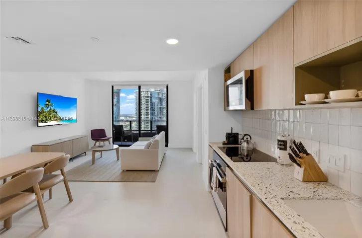 Perched on the 40th floor, this one-bedroom condo offers panoramic views of Biscayne Bay, the Miami skyline, and the vibrant Miami Worldcenter. Wake up to sunrise vistas from the king suite and unwind in the bright living area with a sofa bed and a private balcony. The residence features a modern kitchen, in-unit washer and dryer, and two Smart TVs for ultimate comfort. At Gale Miami, enjoy over 55,000 sq. ft. of resort-style amenities—including a rooftop pool and bar, full-service spa with hammam and sauna, and a state-of-the-art fitness center. With flexible daily rentals and a premier location steps from the Kaseya Center, Brickell, and the Brightline station, this home perfectly blends luxury living with investment potential.
