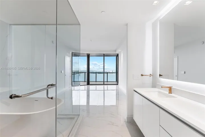 Spectacular high-floor residence at Aria Reserve South Tower, Line 01 (54th floor), featuring 4 bedrooms + office with direct Biscayne Bay and Ocean views. Fully upgraded with all developer options, including Arabescato porcelain floors, Cromat Gray terrace tile, custom ceilings with LED lighting, Somfy motorized shades, upgraded kitchen with Serena Matte countertops, custom illuminated closets, frameless shower glass, and matching bath accessories. Smart-home ready (Savant compatible). Enjoy world-class amenities: sunrise & sunset pools, spa, gym, tennis courts, dog park, kids area, lounge, and direct baywalk access in the heart of Edgewater. Walking distance to restaurants, shops, and minutes from Design District, Wynwood & Downtown Miami. A true masterpiece in the sky.